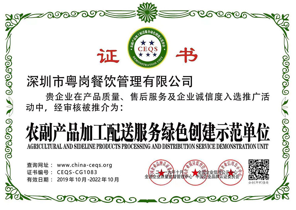 深圳市粵崗餐飲管理有限公司,是一家集蔬菜種植和農副產品配送為一體的專業型餐飲公司,主要為學校、工廠企事業機關單位提供蔬菜和農副產品配送服務。公司自成立以來始終以質優價廉、服務至上為原則,嚴格按照ISO:9001國際標準體系進行管理。同時建立了行業領先的配送中心、大型冷庫和保鮮庫、檢測中心以及專業化的配送團隊,能長期安全、穩定、準時的配送貨物。我們所有蔬菜均經過初步加工、無黃葉,無泥沙等雜質,利用率達97%以上...保障向用戶提供的各類食材的衛生和質量。公司為了適應不同客戶的需求,配有專業人員和配送車輛,實行“一對一”的服務體制,一心一意的為客戶服務,秉承粵崗誠實守信、服務第一、客戶至上的服務標準,真正讓客戶花最少的錢吃最好的菜?;泹彾嗄陙砗我孕佬老驑s,因為我們知道只有勇于擔當責任,才能承擔更大的責任,就是因為 粵崗員工貫徹公司態度決定一切、細節決定成敗的真理,從質量抓起,從服務做起,才創造了如今的規模化供應、統一性配送、專業化服務的粵崗。